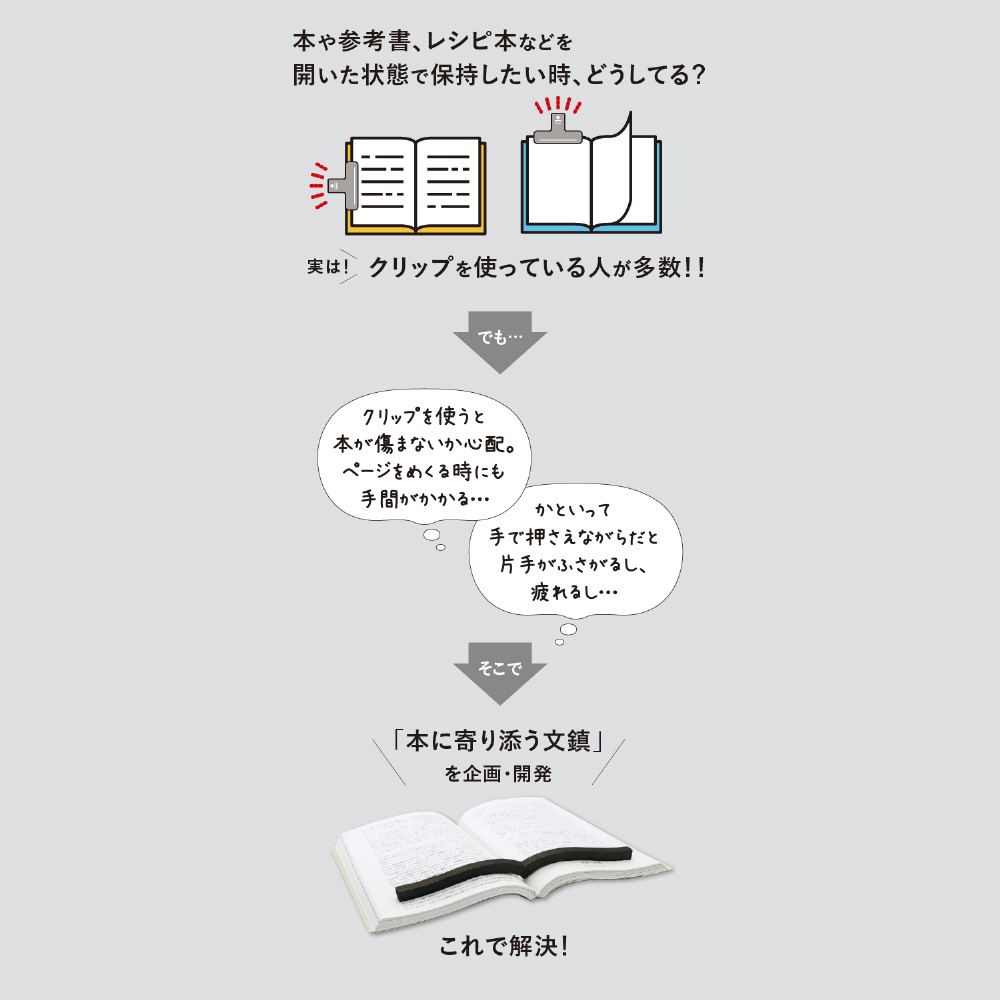 ページめくりがしやすい、本に添う形状の文鎮(スタンダードモデル・鉄製)