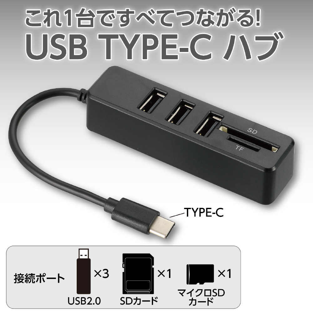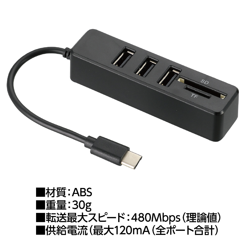 [USB-C オス→メス カードスロットx2 / USB-Ax3]変換アダプタ 91865