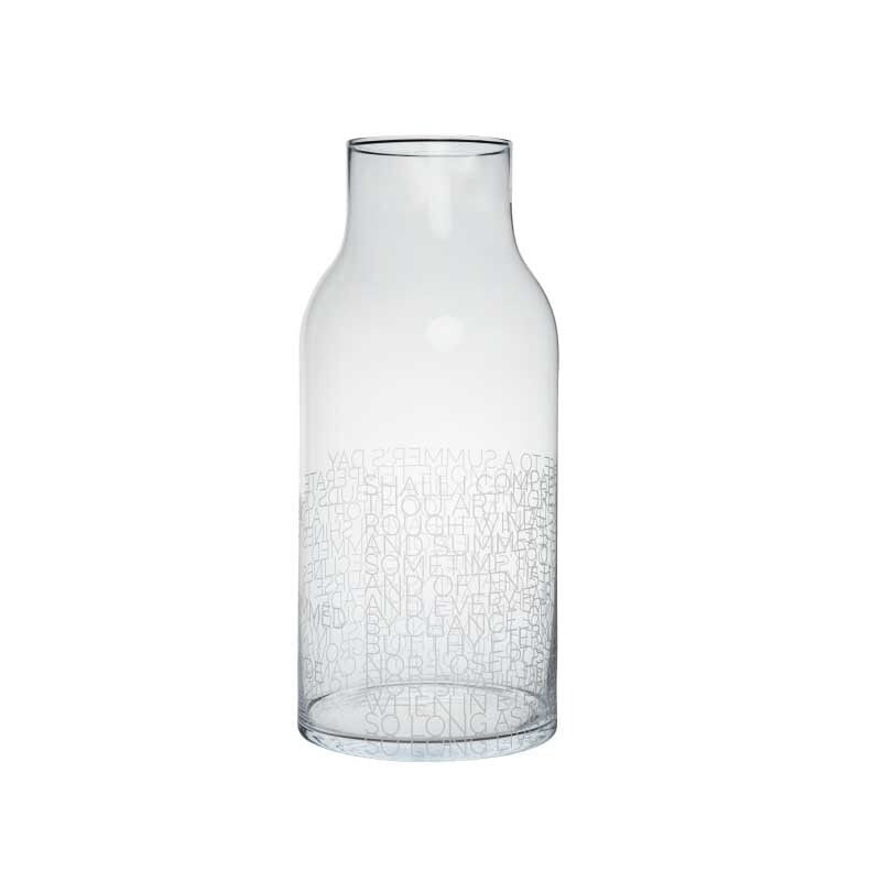 ガラスに文字やイラストがデザインされた、おしゃれなフラワーベースです。