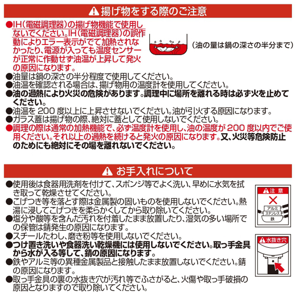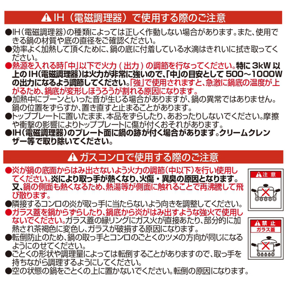 IHクッキングヒーターでご使用の際は火力を中以下にしてご使用下さい。