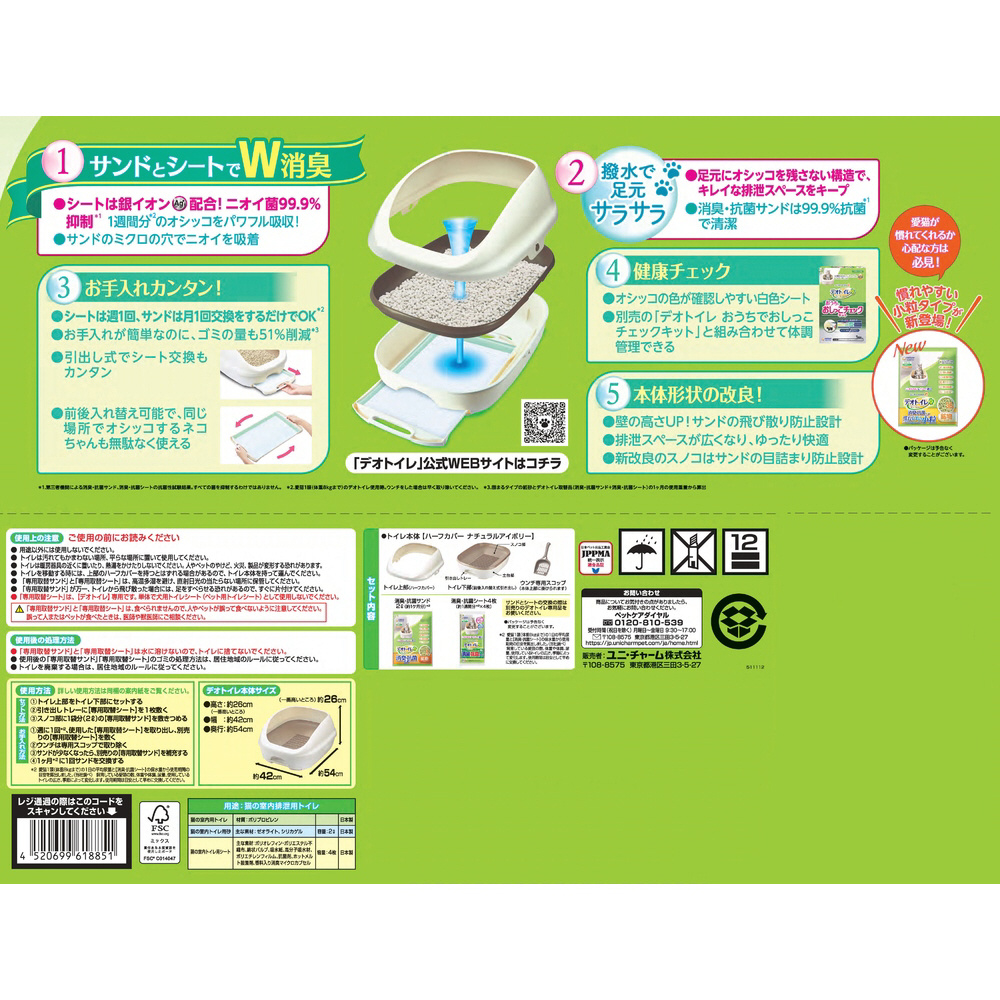 ・別売の「デオトイレ おうちでおしっこチェックキット」と組み合わせて体調管理できる