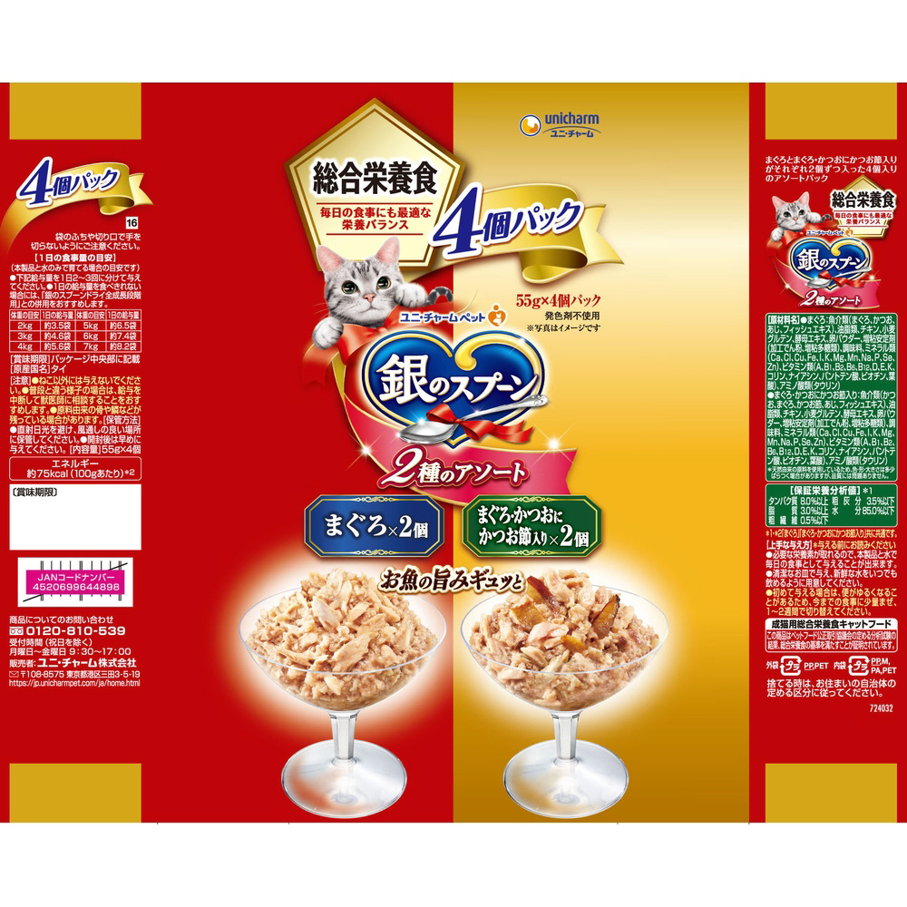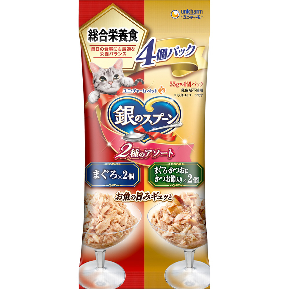 銀のスプーン パウチ 総合栄養食 2種のアソートまぐろ/まぐろ・かつおにかつお節入り 55g×4袋