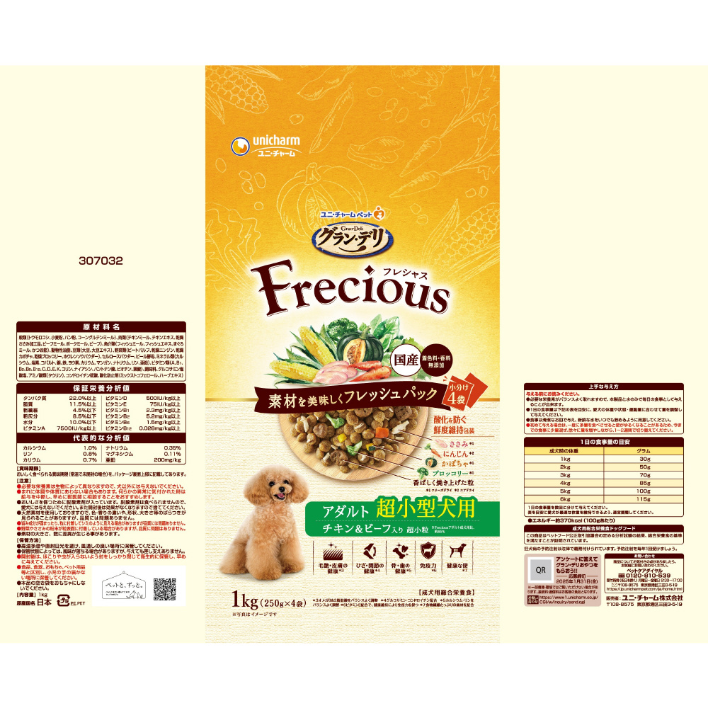 グラン・デリ Frecious(フレシャス)アダルト成犬用 超小型犬用 チキン&ビーフ入り 1kg(250g×4袋)