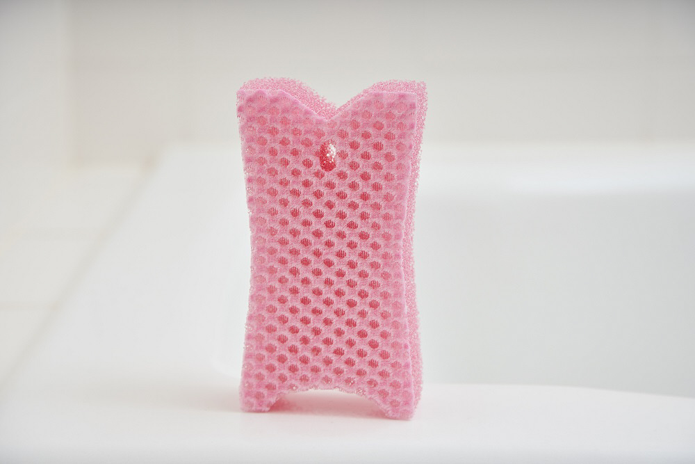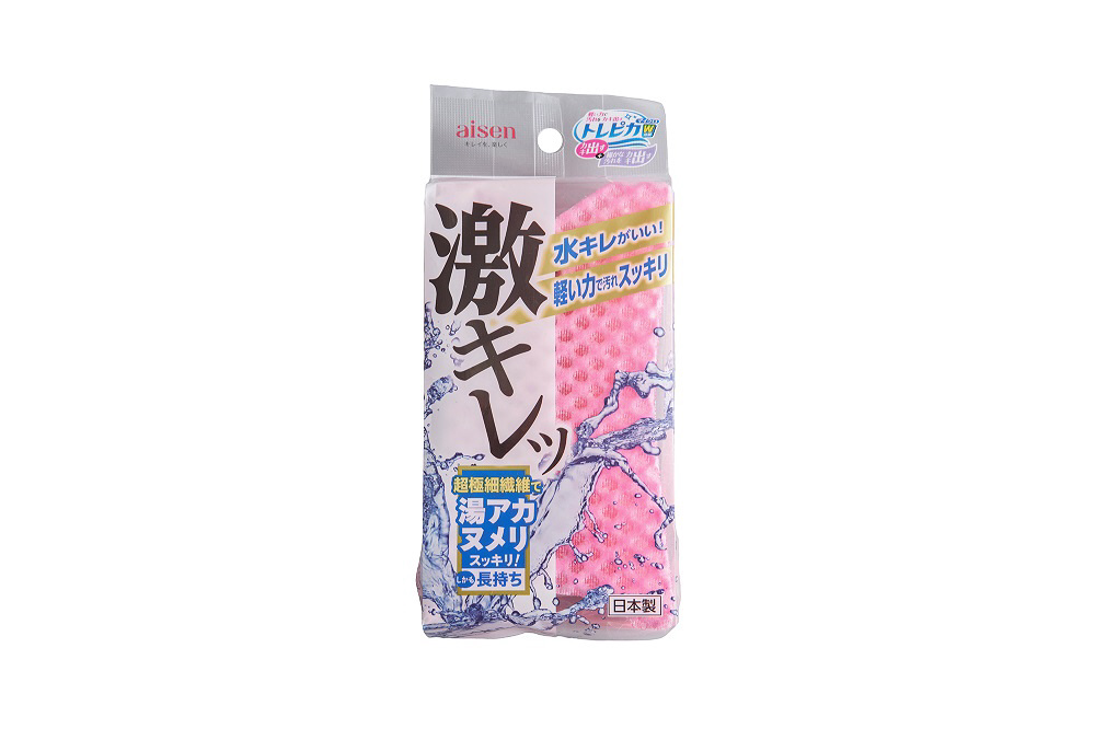 目の粗いスポンジで水切れか?よく、軽い力て?汚れか?落ちるハ?ススホ?ンシ?て?す。超極細繊維か?湯アカ、ヌメリをソフトにしっかり落とします。