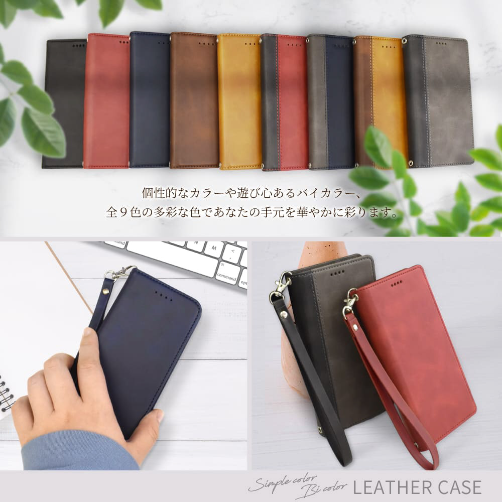 本革調なのに高級感を演出してくれるフェイクレザー手帳型ケース!シンプルさゆえに日常からビジネスまで幅広い場面でご使用頂けます
