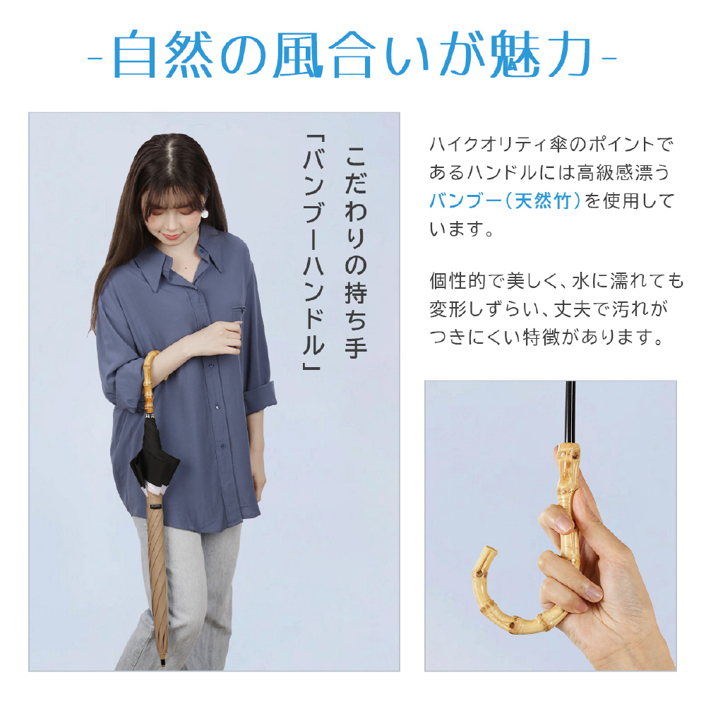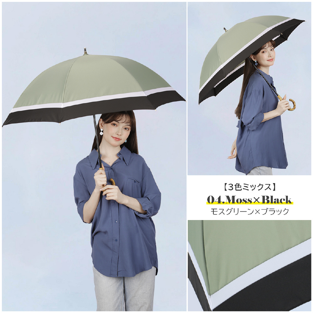 手動開閉雨傘 7本骨長傘 バンブーハンドル 3色ミックス モス×ブラック M553S-071AUI-moss-black [雨傘 /55cm]