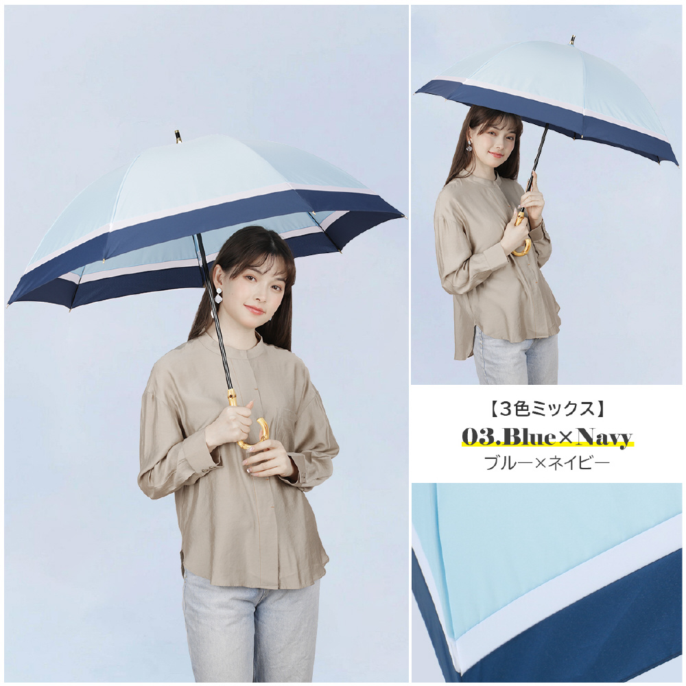 手動開閉雨傘 7本骨長傘 バンブーハンドル 3色ミックス ブルー×ネイビー M553S-071AUI-blue-navy [雨傘 /55cm]
