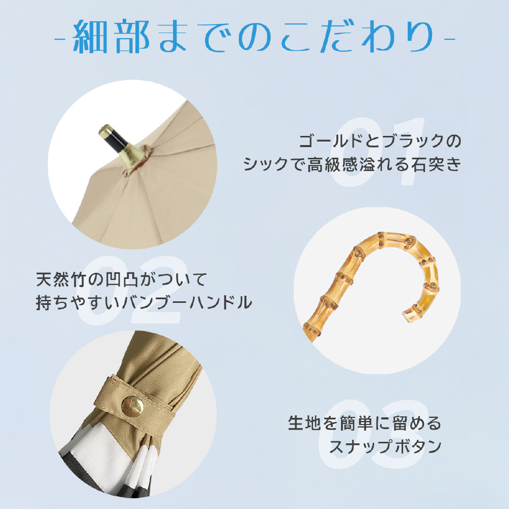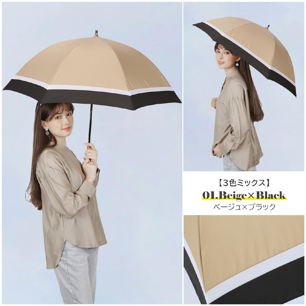 手動開閉雨傘 7本骨長傘 バンブーハンドル 3色ミックス ベージュ×ブラック M553S-071AUI-beige-black [雨傘 /55cm]