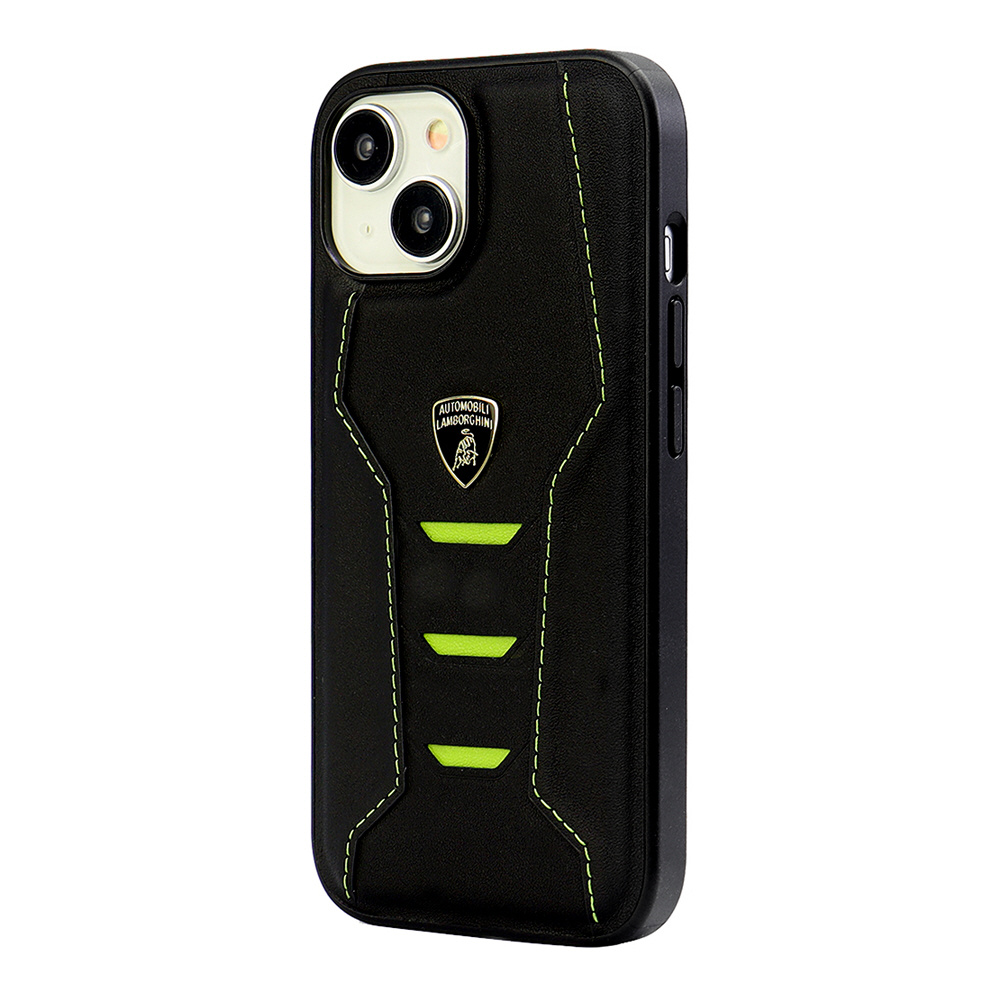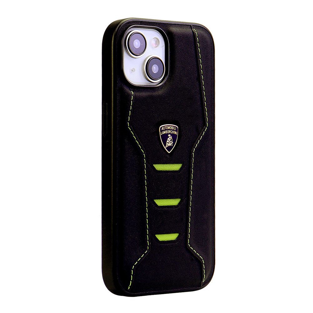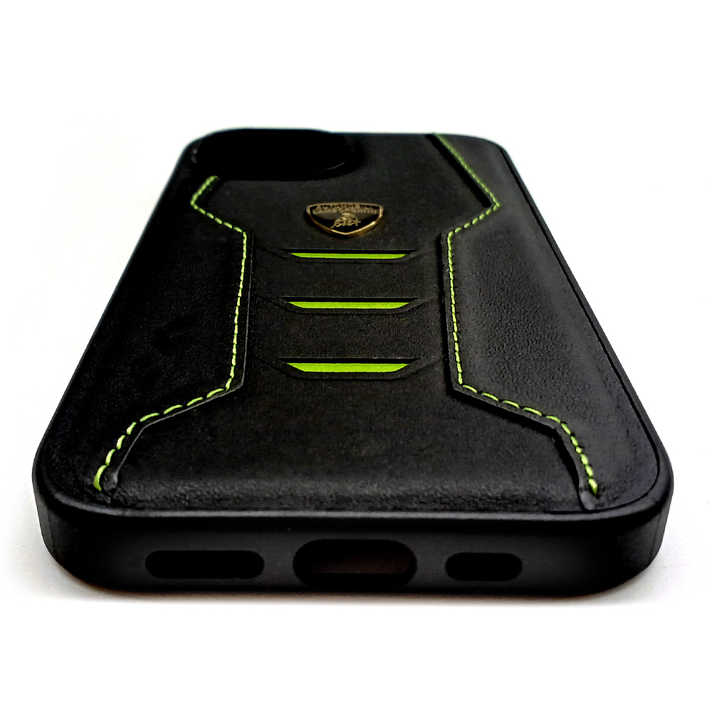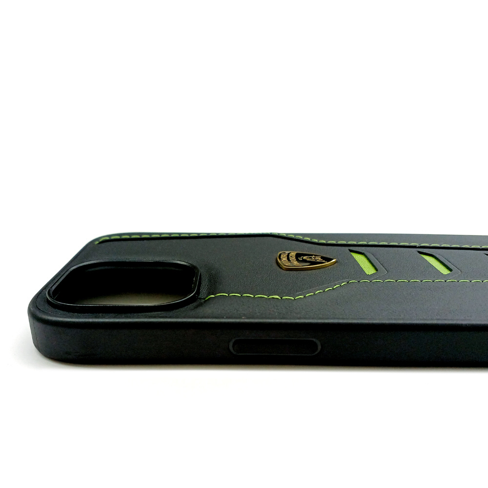 ランボルギーニ iPhone15用 本革 背面ケース グリーン LBTPUPCIP15HUD16GN