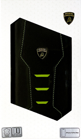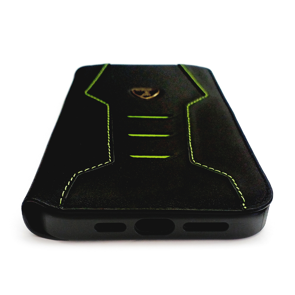 ランボルギーニ iPhone15 Pro Max用 本革 手帳型ケース グリーン LBTPUFCIP15PMHUD16GN