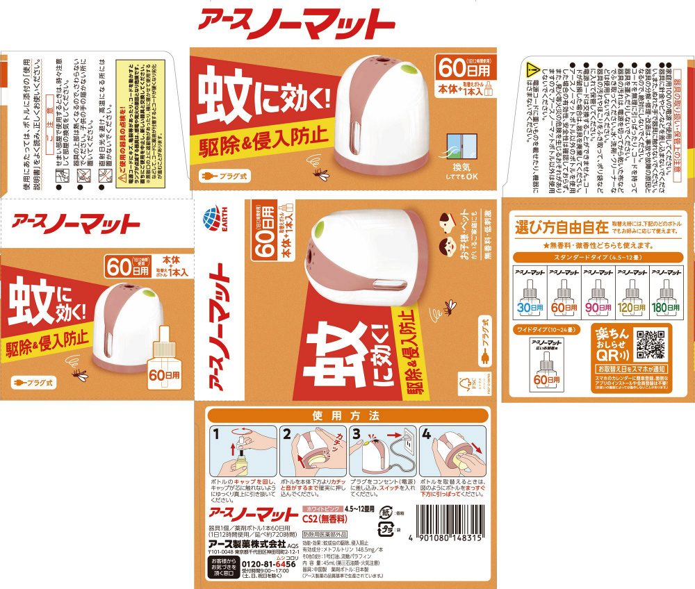 アースノーマット 60日セット ホワイトピンク 本体+取替ボトル1本入り 【防除用医薬部外品】