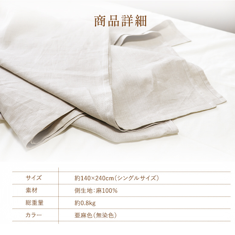 くったりとした落ち感が魅力の麻シーツは、春夏には特におすすめの素材。