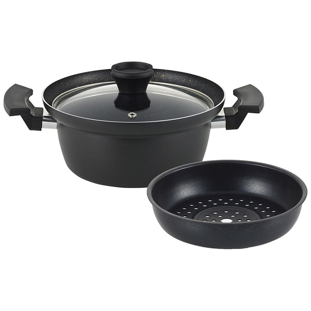 煮物に便利な深鍋に、蒸し目皿が付属。