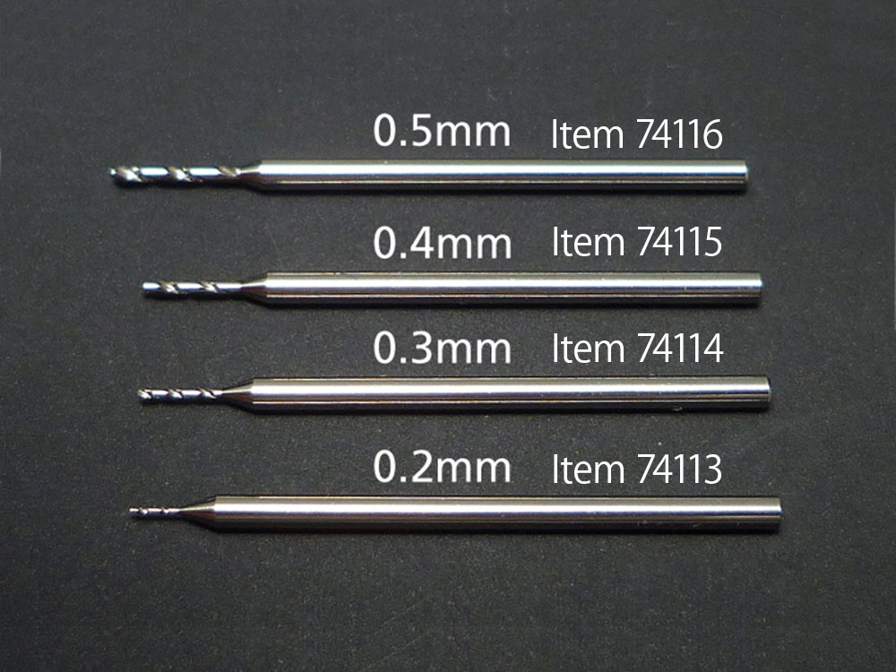 ピンバイスに取り付ける部分の軸径が1.0mmとドリル刃に較べて太くなっているので、確実に取り付けられ芯ブレしにくいのが特長です。優れた切れ味はもちろん耐久性も十分。プラモデル製作の精密穴開け作業をはじめ、鉄、真ちゅう、アルミ、木の穴開けも可能です。保管に便利なプラスチック製ケース付き。精密ピンバイスD-Rと組み合わせての使用がお勧めです。 【 基本スペック 】 高速度鋼製 ドリル刃0.5mm、軸径1.0mm
