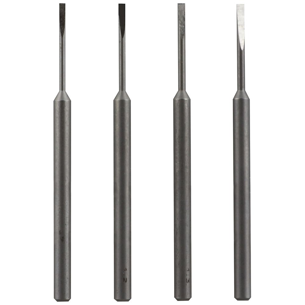 ピンバイス本体に装着し、ドリル穴の底面のフラット加工、小型彫刻刀として使用します。