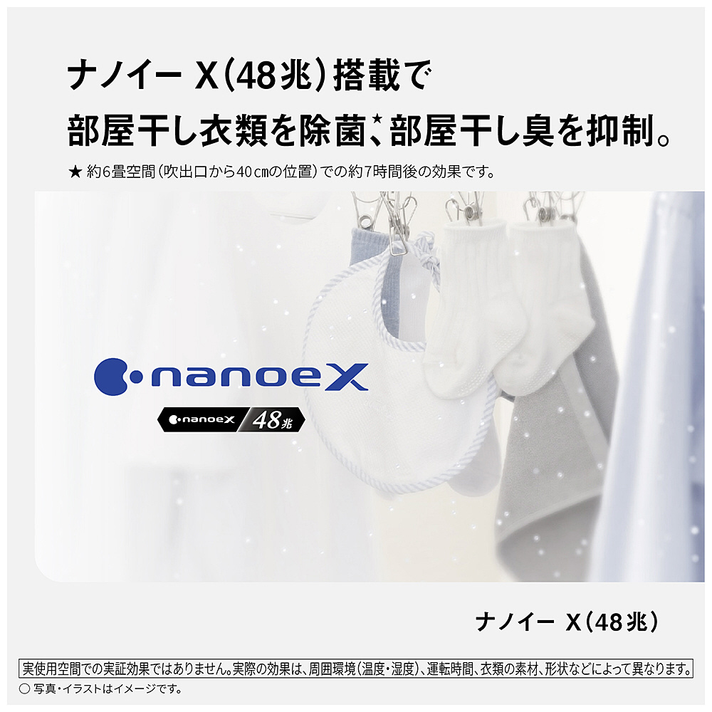 ナノイーX(48兆)で部屋干し衣類を除菌★2、部屋干し臭を抑制※3
