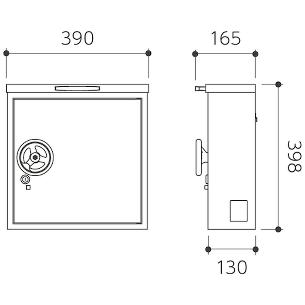本体サイズ:開時:W390 X H550 X D465mm・投函口:W330 X H40mm・材質:本体:高耐食溶融めっき鋼板
