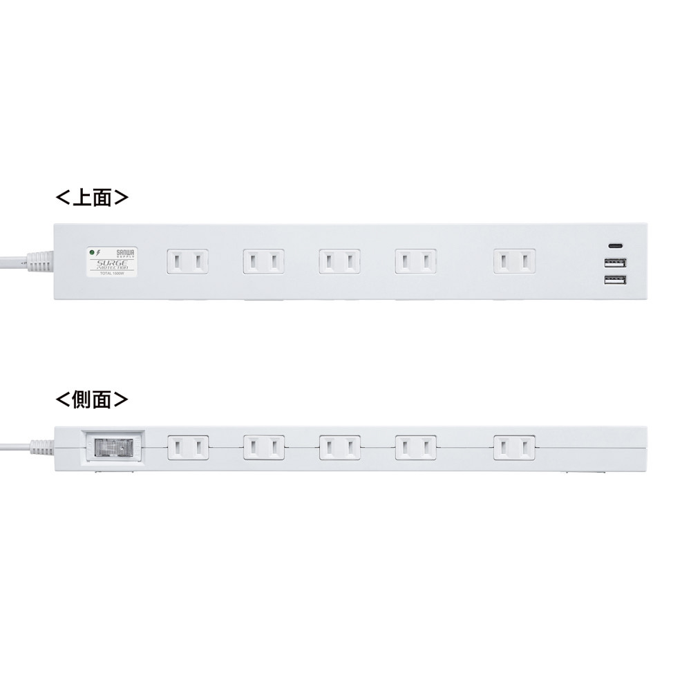 雷タップ 10個口+USB-A+Type-C(PD20W) TAP-SP2110NUC-1W