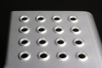 バーリング加工を施すことにより、フットレスト面の剛性を確保することともに、運転中の足の滑りを防止します。