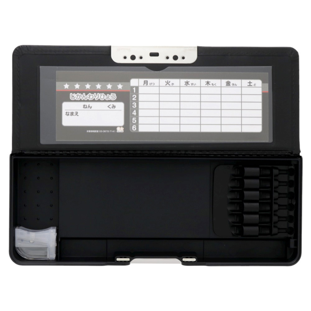 ココが小学生に選ばれる理由!(1)裏表がわかりやすいマグネットクリップ(2)消しゴムスペース(3)鉛筆削器付き(4)軽い力で開けられる指掛かり(5)時間割表付き(6)6本収納できるペンホルダー(7)名前ペン収納ケース(8)人気No.1のアピールマーク付きパッケージ(9)裏面は定規などにぴったり