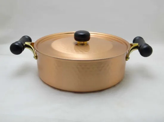 熱伝導の良い銅製のIH対応浅型鍋(24cm)。