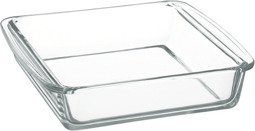 耐熱ガラス製の角型ケーキ焼き皿です。