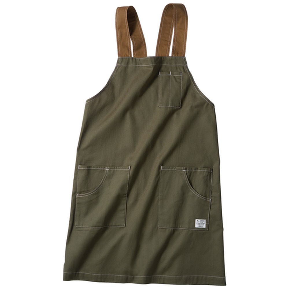 肩ひもの配色がお洒落な両脇大容量ポケット付き、首への負担をかけない肩掛けタイプのエプロンです。