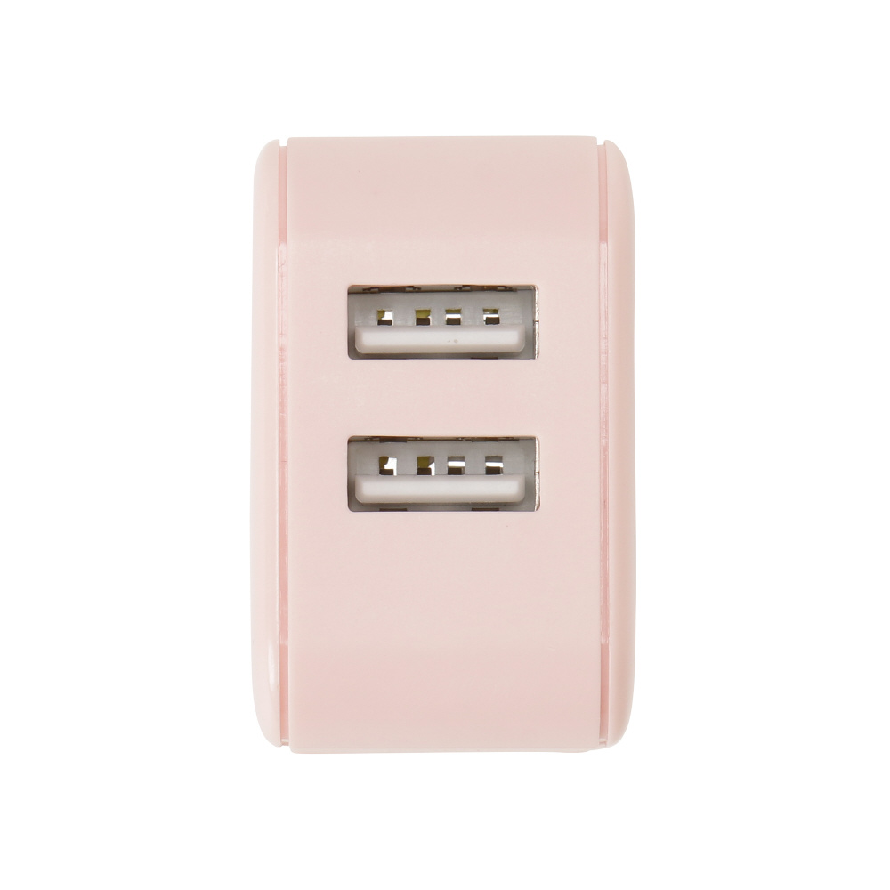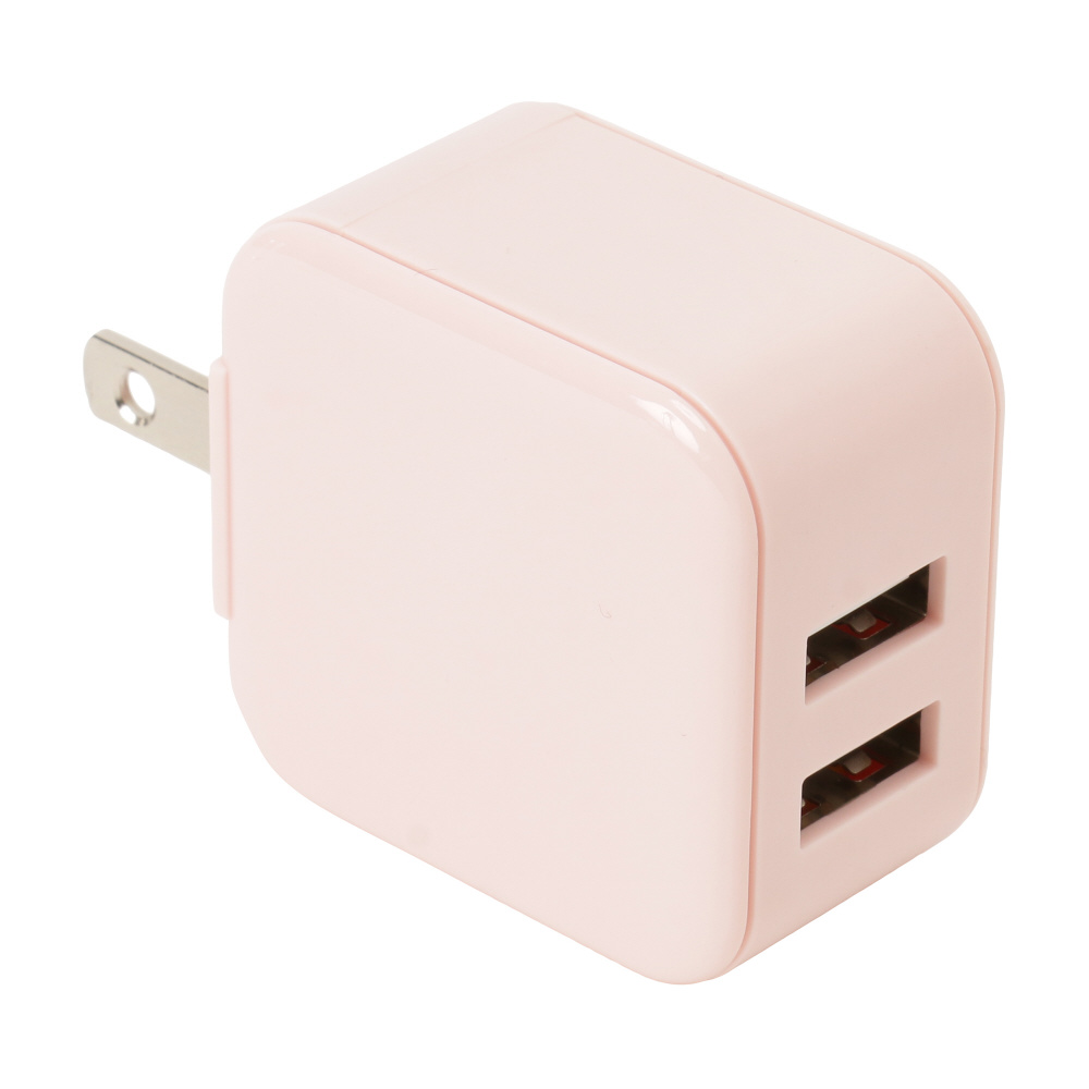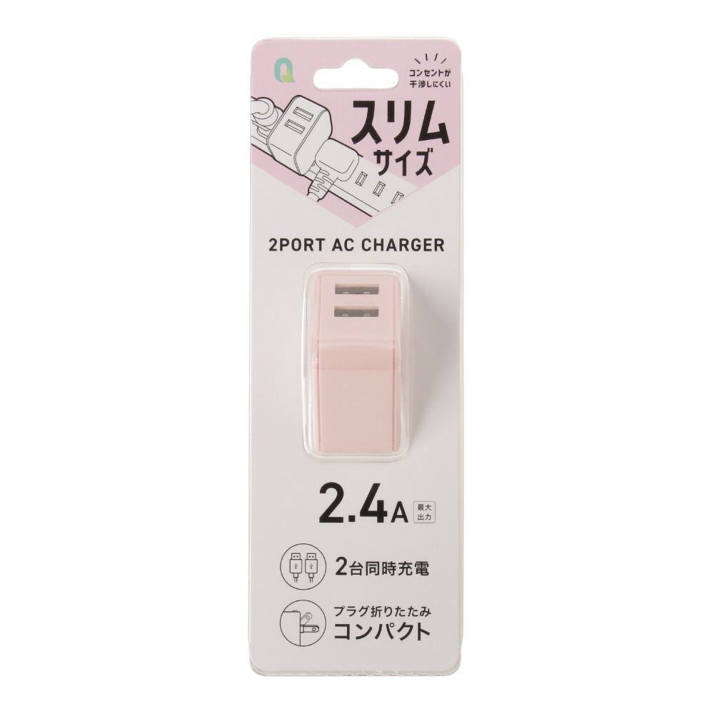 2.4A出力USB2ポート スリムタイプACアダプタ ピンク QU-029PK