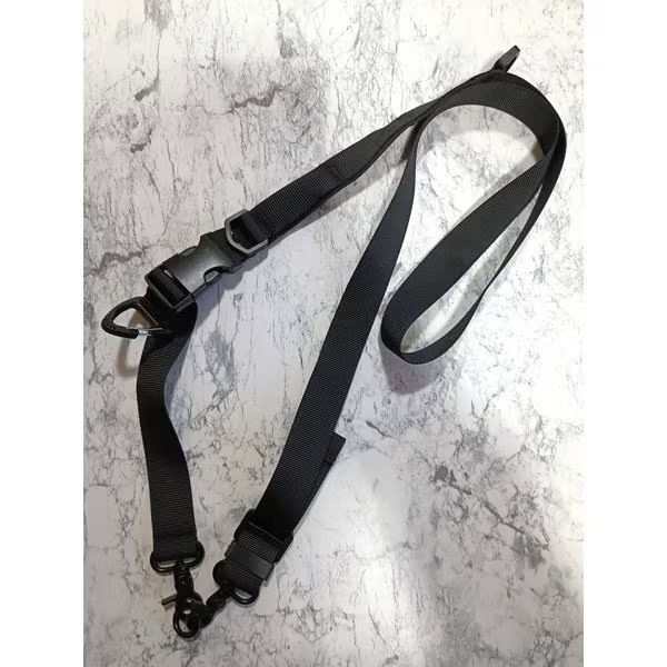 強靭なストラップと、小物をつけるカラビナフックが4つもついたショルダーストラップです、長さの調節も簡単で、アウトドアにも最適なストラップです。
