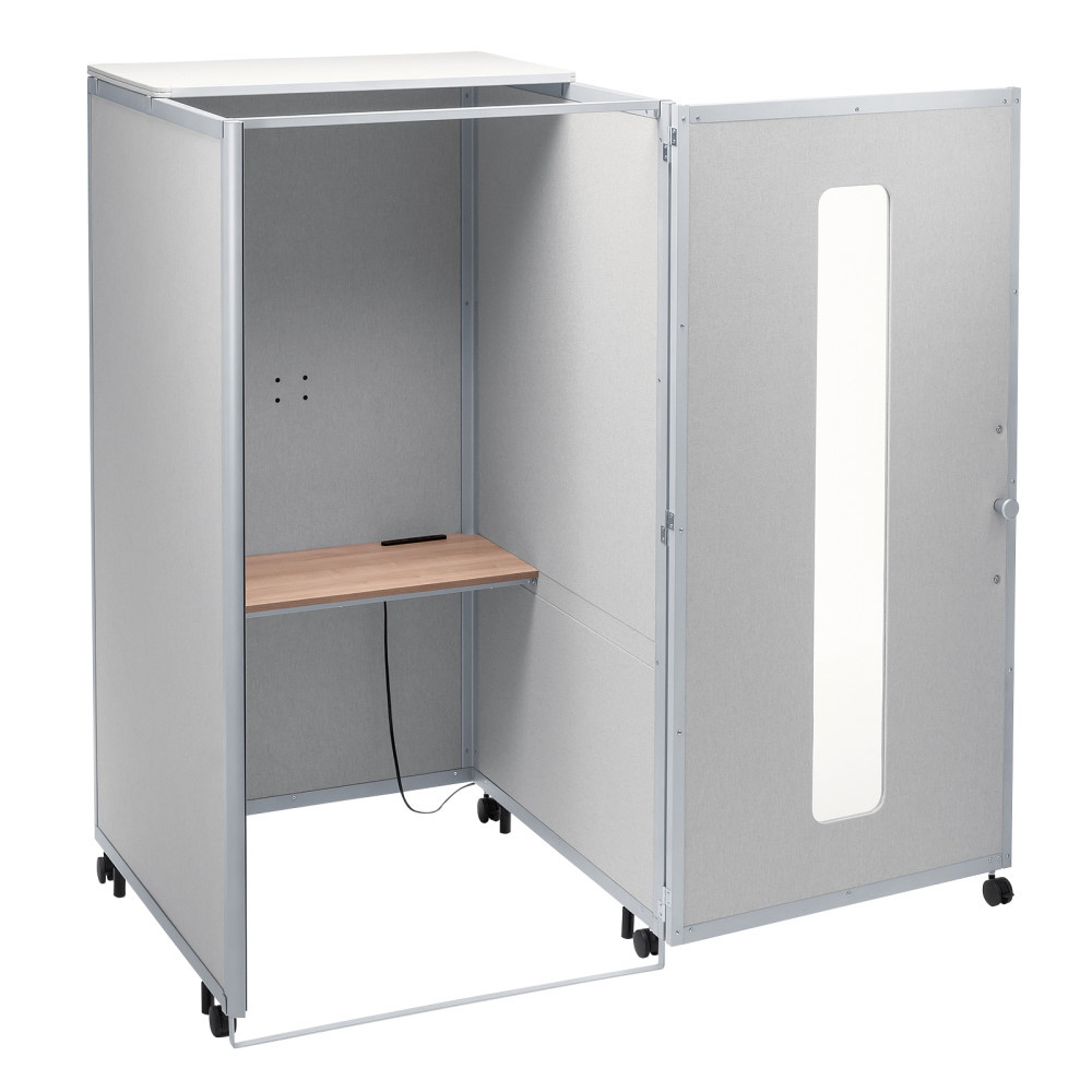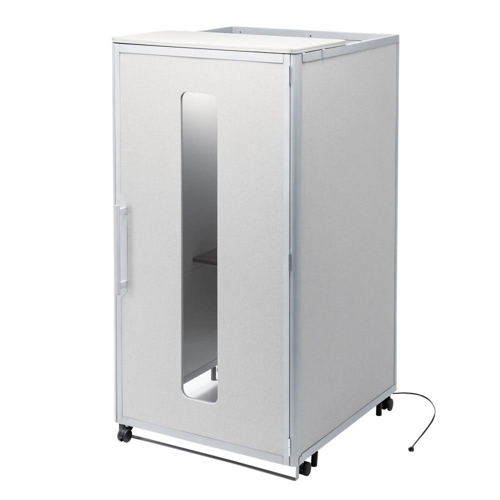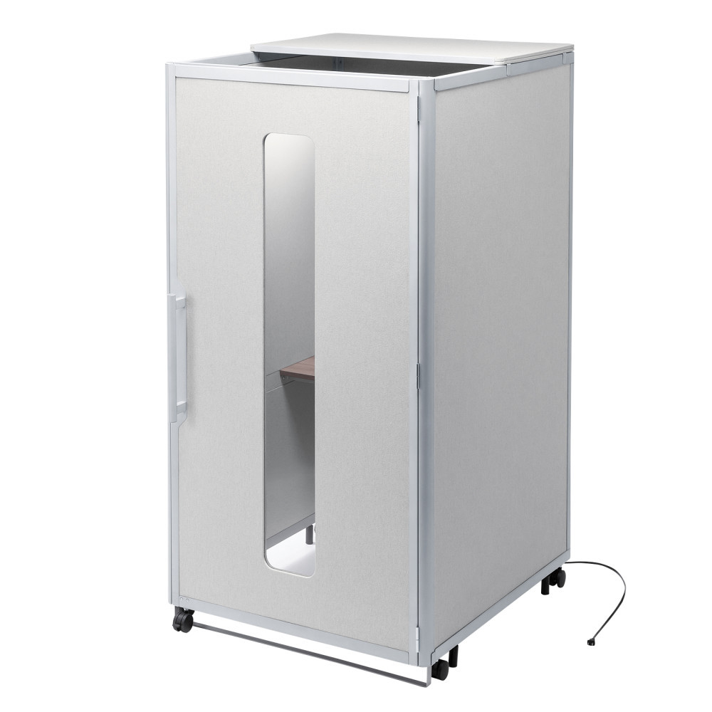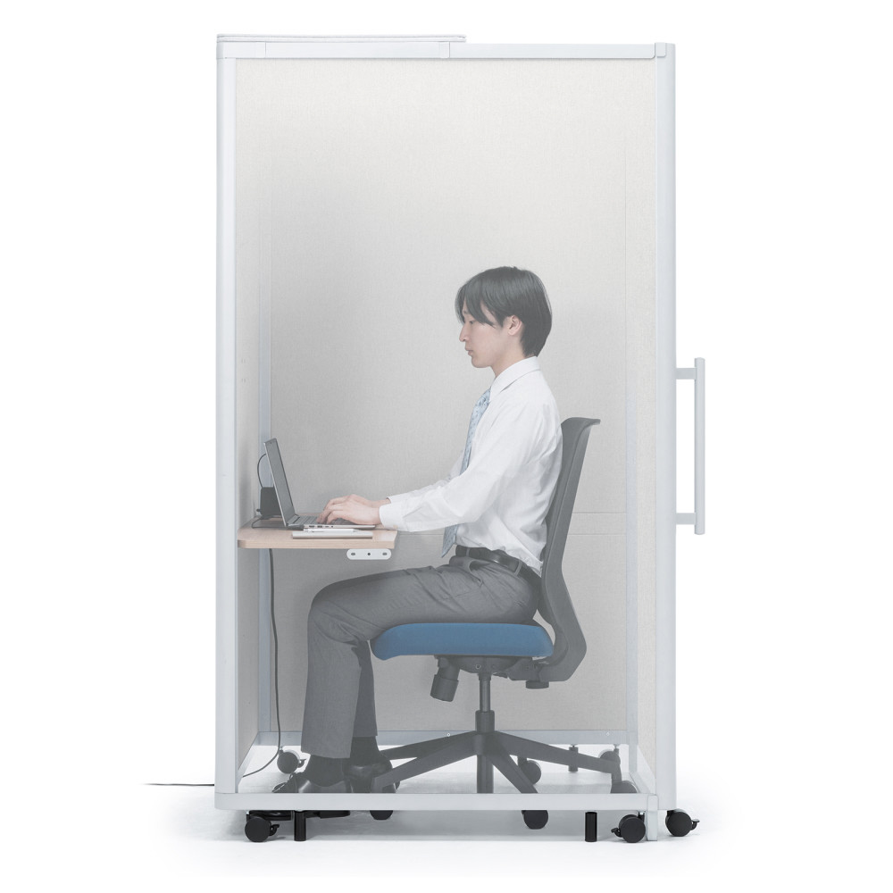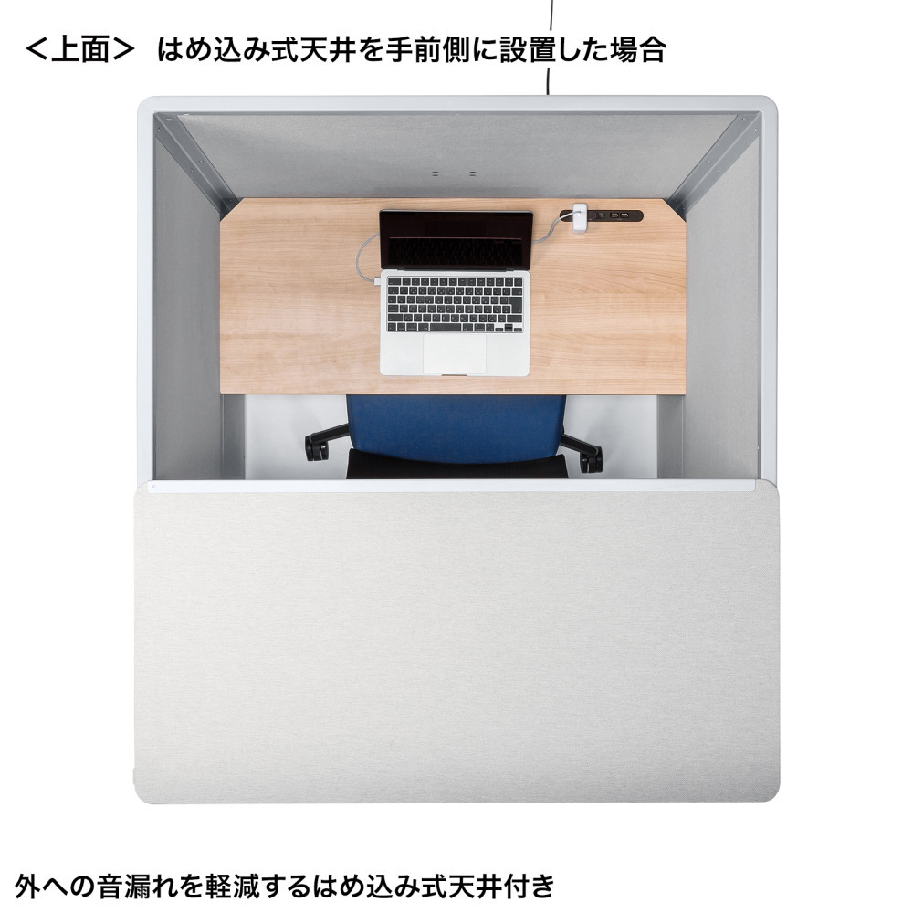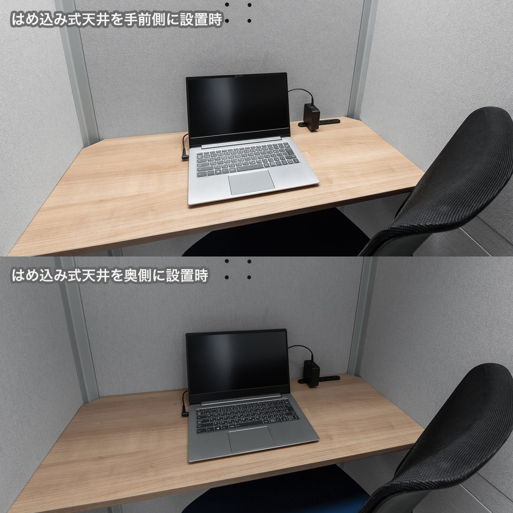 ●外への音漏れを軽減するはめ込み式天井が付属しています。内部の音を外へ出しにくくするための前方用パネルとデスク部を明るくしたい際の後方用パネルを同梱しています。