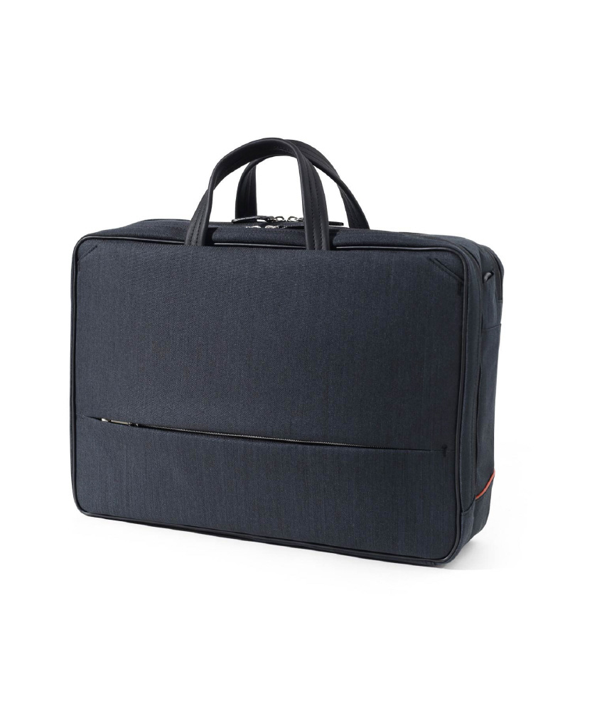 本体素材には、シャンブレー調のポ リエステル生地に撥水加工を施した生地を使用し、軽量に仕上げました。シンプ ルなデザインながらも、2本手ハンドルが隠れる機能が特徴。ハンドルを出し入 れしても型崩れしにくいよう見えない内側にも工夫しています。フロントポケットの内側はパイル地を使用。キズが 付きにくく、スマホなどの電子ツール収納に適したポケットです。全型共通でセッ トアップ対応しているので、出張や旅行にも便利です。
