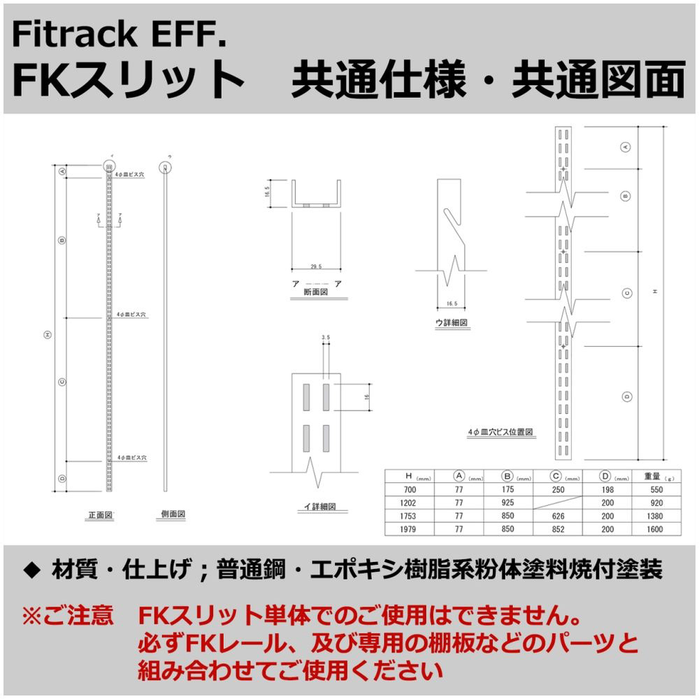 FitrackはFKレール(横レール)と FKスリット(縦レール)の骨組みを取り付けて、そこに可動式のセレクトパーツを設置する収納システムです。好きなパーツを選んで自分だけの収納がつくれます。収納するものに合わせて棚をうごかせるから、あなたに合わせたぴったりかつ最大限の収納力を発揮します。