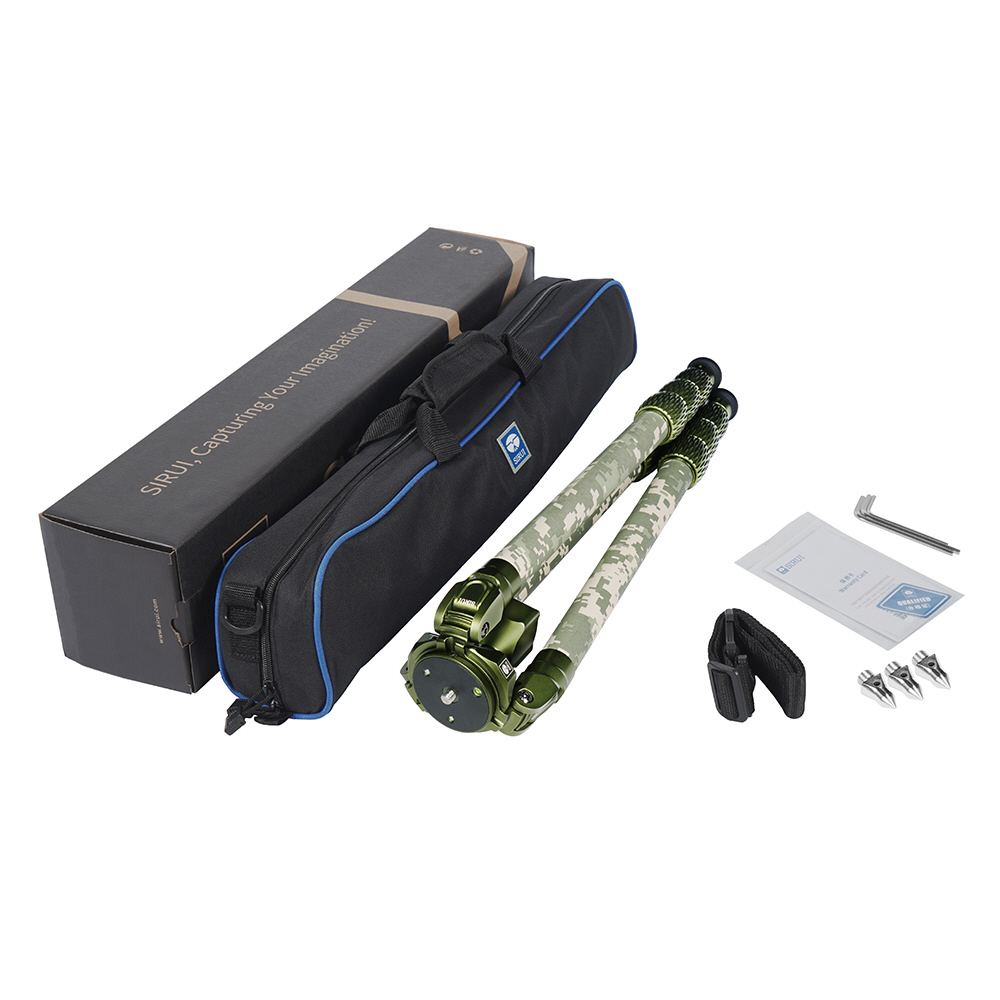 アウトドアカムフラージュシリーズカーボンファイバー製4段ビデオ三脚セット。