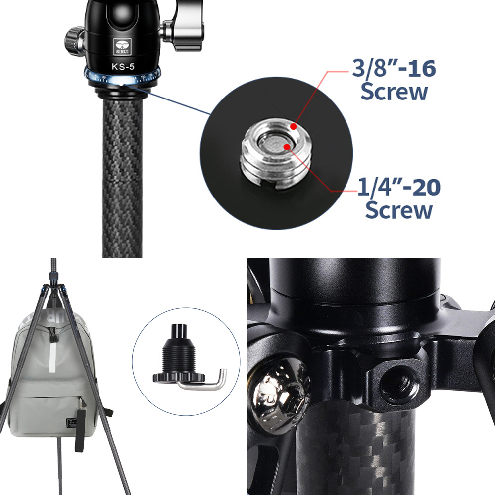 ローアングルやマクロ撮影に便利なリバーシブルセンターポールを採用。高さ調節可能なほか、上部をまわして外し、地上撮影用に短いポールを独立して使用することができます。