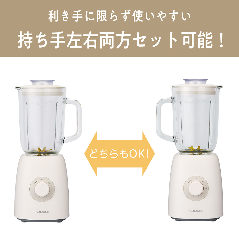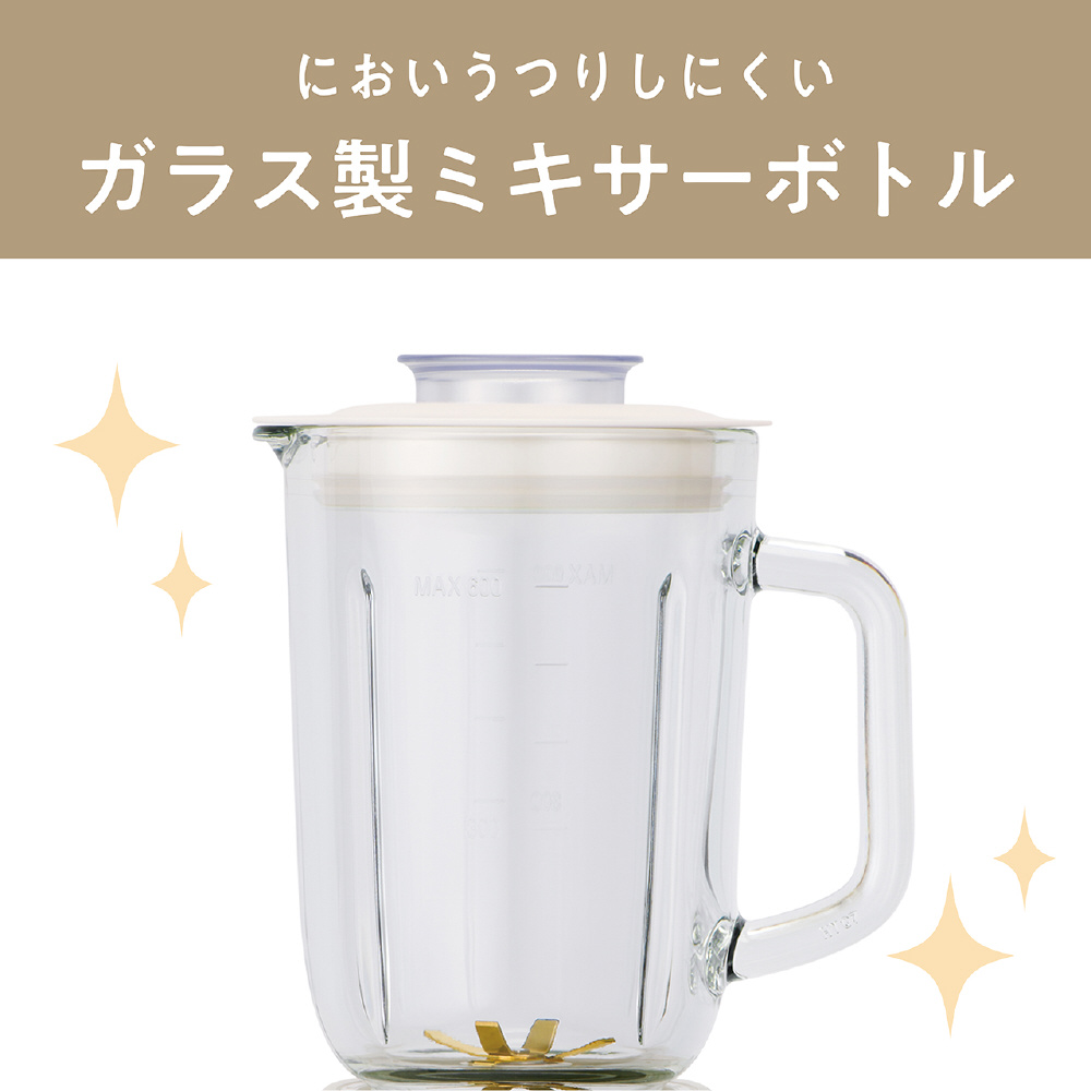 コイズミのミルミキサーは、ガラス製ボトルとチタンコーディング刃を採用。