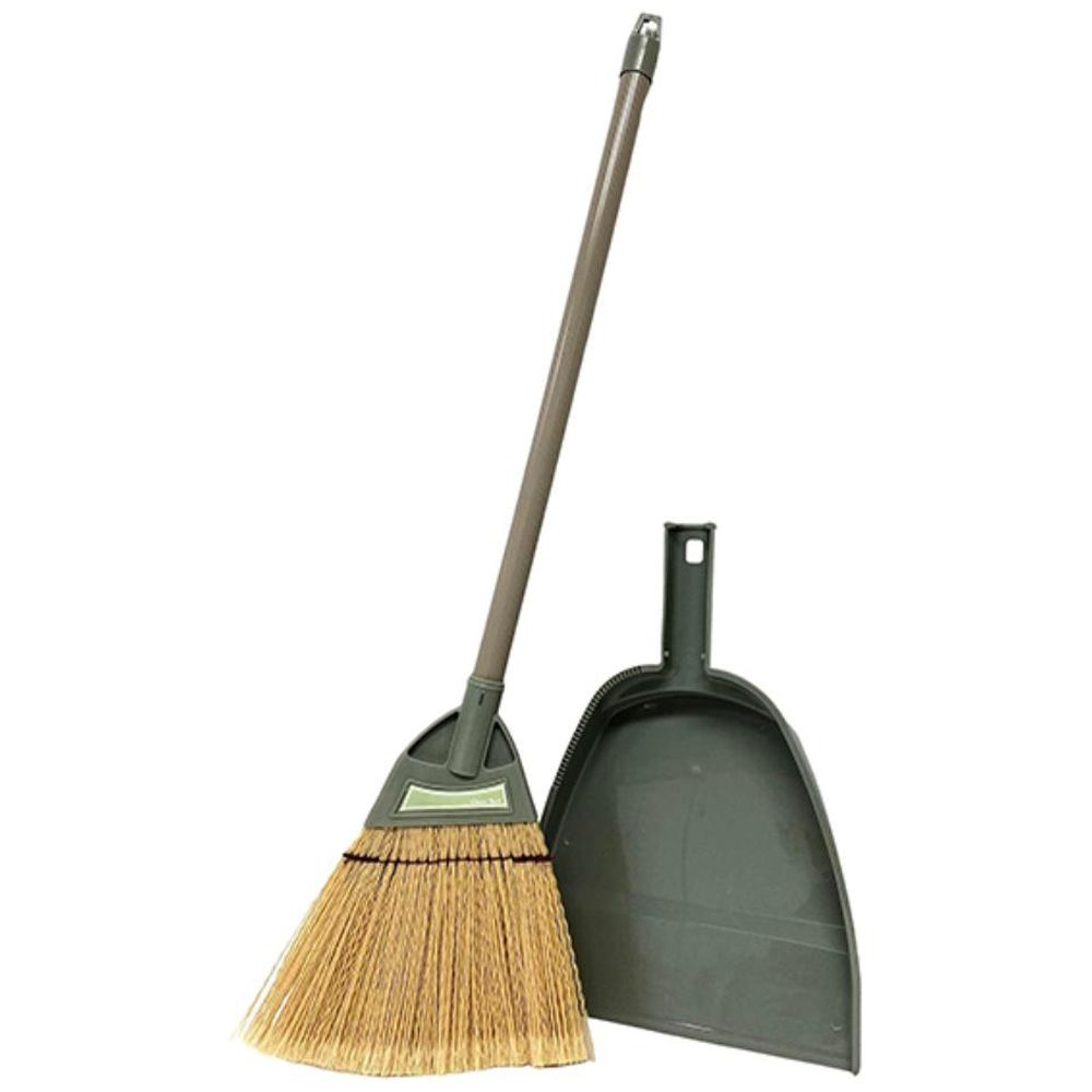 先割れ加工で細かいホコリも掃けて、水気に強く腰も強いチリトリ化繊ほうきセットです。