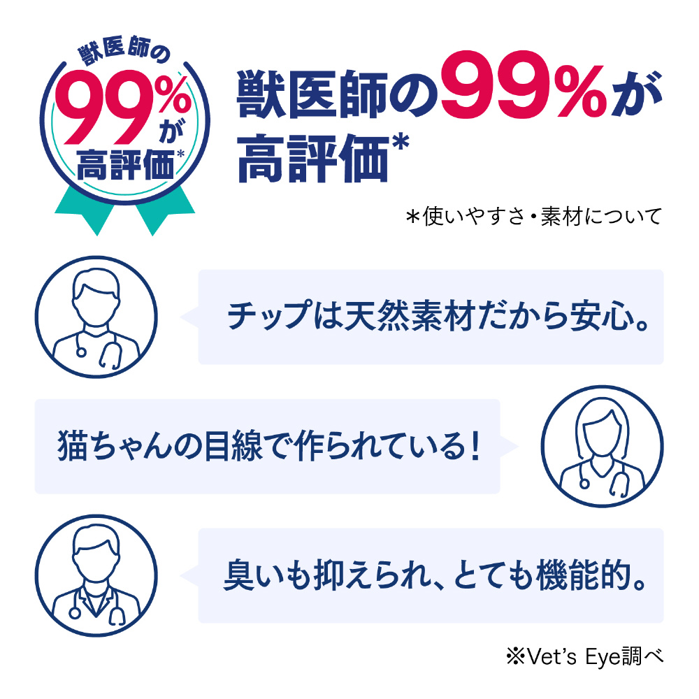 「脱臭・抗菌チップ」は、 オシッコで固まらないので表面サラサラ。猫ちゃんの足もとはいつも清潔です。