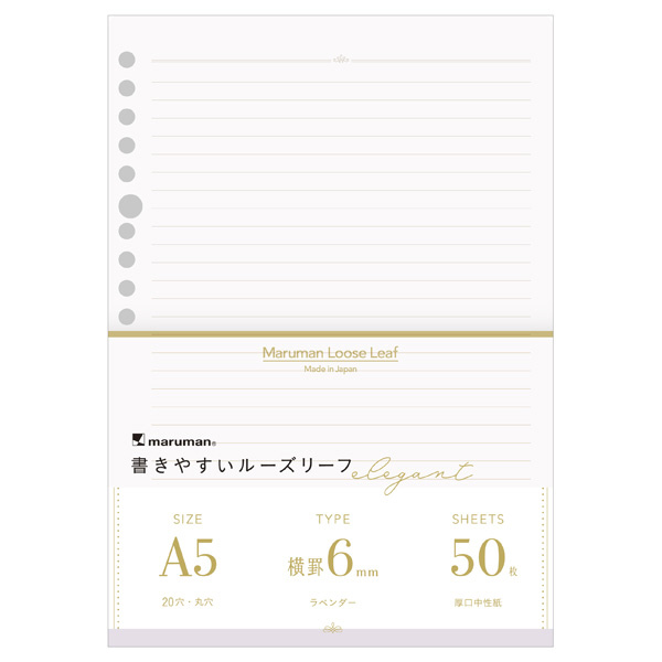 書きやすいルーズリーフ エレガント [A5/6mm/横罫線/20穴] ラベンダー L1331DB