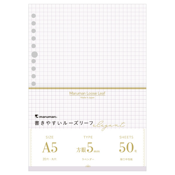 書きやすいルーズリーフ エレガント [A5/5mm/方眼罫線/20穴] ラベンダー L1337DB