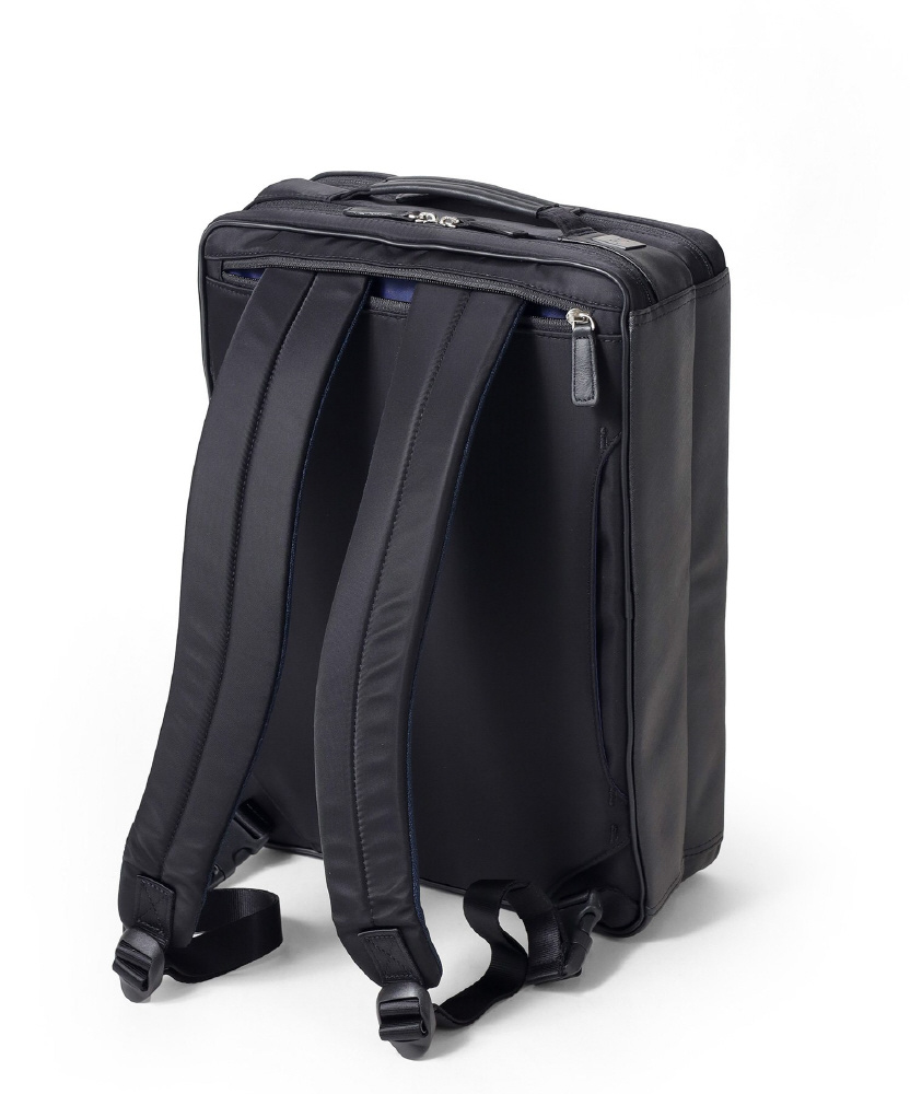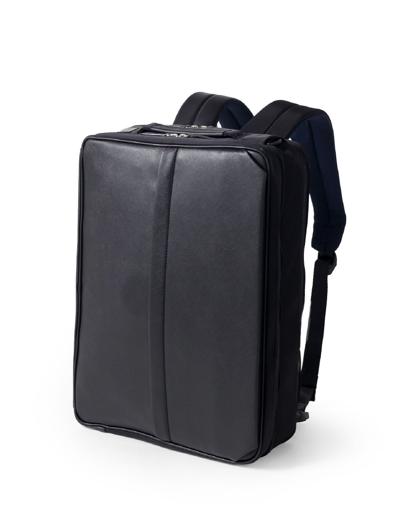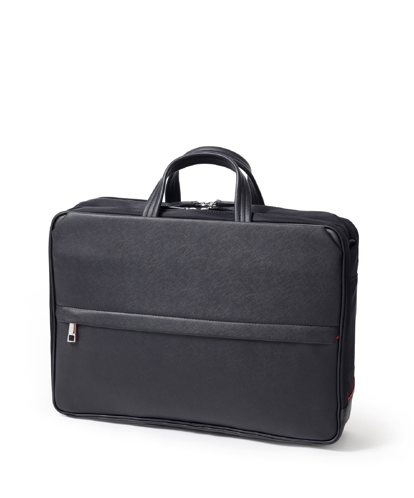 牛革のハンドル、前面には傷が目立ちにくいサフィアーノ型合成皮革を、そしてマチと背面にはナイロンを使用した異素材コンビでスッキリとしたデザインのビジネスバッグです。持ち手のハンドルをコンパクトに収納可能。リュックやショルダーバッグとして使用する際には収納することで、すっきりとスタイリッシュにきまります。ファスナーを金属からスプリットコイルへ変更し、よりスムーズな開閉と軽量化となっています。