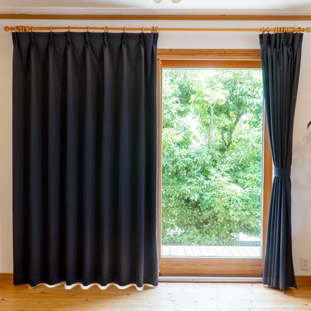 2枚組 遮光・防炎ドレープカーテン マーク2 ブラック [幅100×丈135cm /遮光1級]