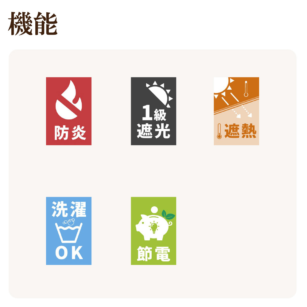 【サイズ】幅100×丈135cm(2枚組) 【機能】遮光1級、防炎、ウォッシャブル 【フック形状】アジャスターフック