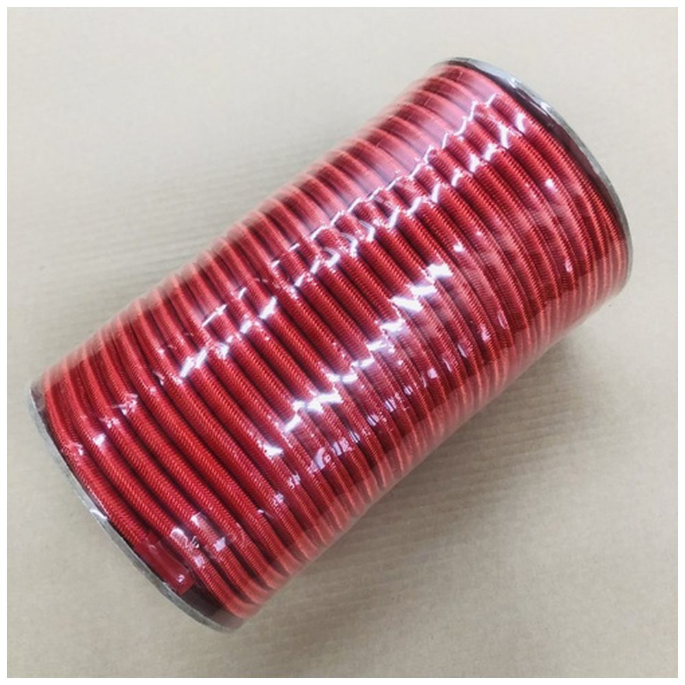 耐久性に優れた赤色の7mmΦタイトゴムロープ(33m)天然ゴム8本をポリエステルで被覆した丈夫なロープです。