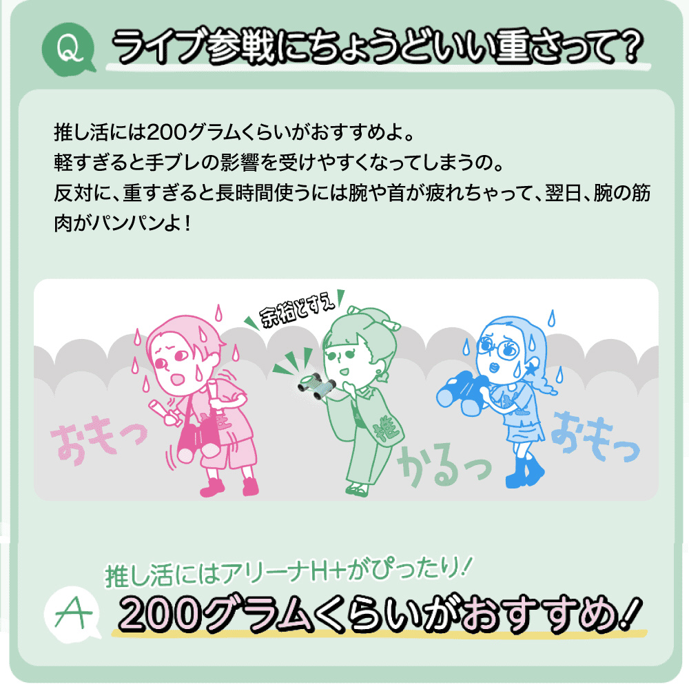 POPでおしゃれなのに機能も充実!ライブ、コンサートに最適な1台。ニュアンスがあり個性も出せるくすみカラーを基調とした5パターンの配色ボディカラーで可愛さと落ち着きが共存する新しいアリーナH+。キュートでカラフル&クリアな視界!ライブ、コンサートにも最適な1台です。