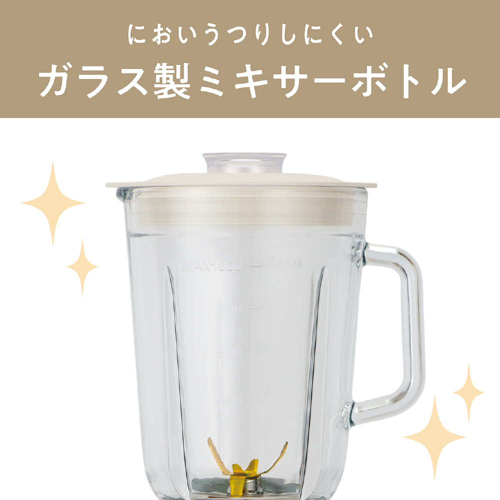 HIGH/LOW/FLASHの3モード搭載、ジャーがガラス製の為、ニオイ移りも少なく衛生的。
