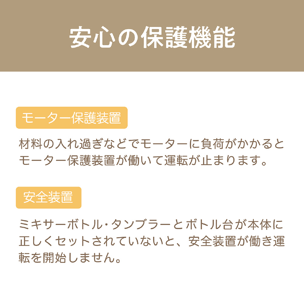 使用用途に合わせて3モードで調整が可能。充実の安全装置 ボトル検出安全スイッチサーマルプロテクター(過熱、過電流二重保護)