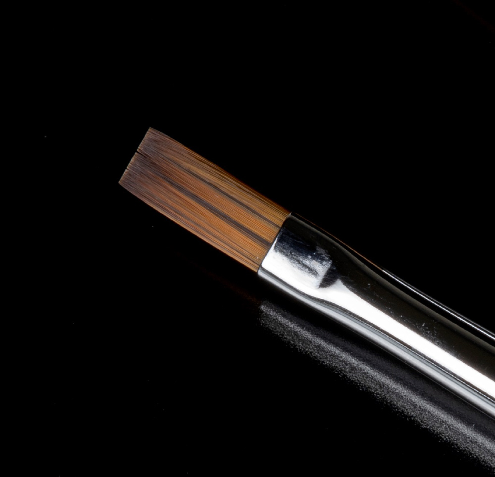さらにチタンを配合することにより溶剤への耐久性もアップした、とくに筆塗りモデラーにおすすめしたい平筆です。