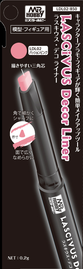■塗ってぼかすだけのキャラクタープラモデル・フィギュア用パウダー塗料「ラスキウス・デコ」シリーズに、より手軽に、よりピンポイントに使えるライナータイプが登場します。