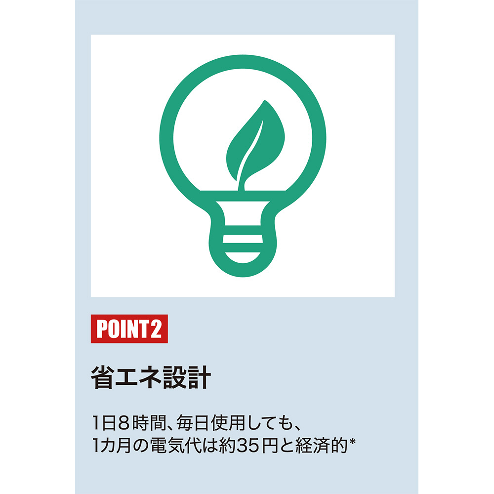 毎日8時間使用しても電気代は1か月約35円と省エネ設計!