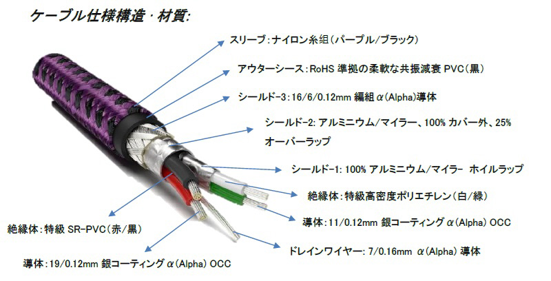 ●アウターシース:RoHS準拠の柔軟な共振減衰PVC(黒)